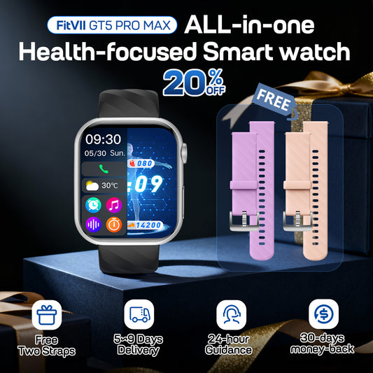 Best Upgrade FITVII® GT5 Pro Max Blood Pressure Monitoring Watch With Blood Glucose ECG Heart Rate+Calls Health Fitness Tracker 2026