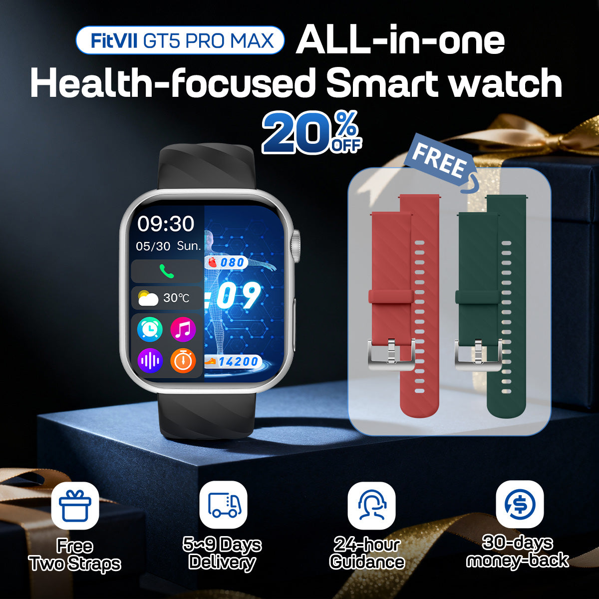 Backed by clinical testing and loved by thousands of users worldwide, the FITVII GT5 Pro Max combines technology, safety, and comfort in one watch. Comes with a 1-Year Warranty and 30-Day Money Back Guarantee.